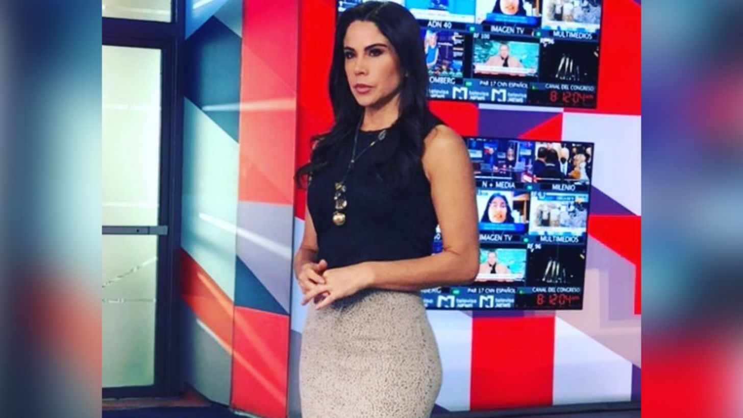 En la imagen se alcanza a apreciar a la conductora grabando su programa de radio, fuera de las instalaciones de la empresa de San Ángel, mientras lleva ligero maquillaje, una chaqueta negra y el cabello peinado con ondas.