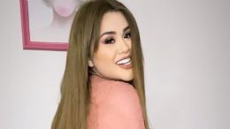 La hermana de 'Lapizito' y 'Lapizín' se grabó mientras modela un ajustado vestido con estampado en tonos azul que resalta su esbelto cuerpazo, el cual consiguió tras bajar más de 13 kilos luego de someterse a un bypass gástrico.