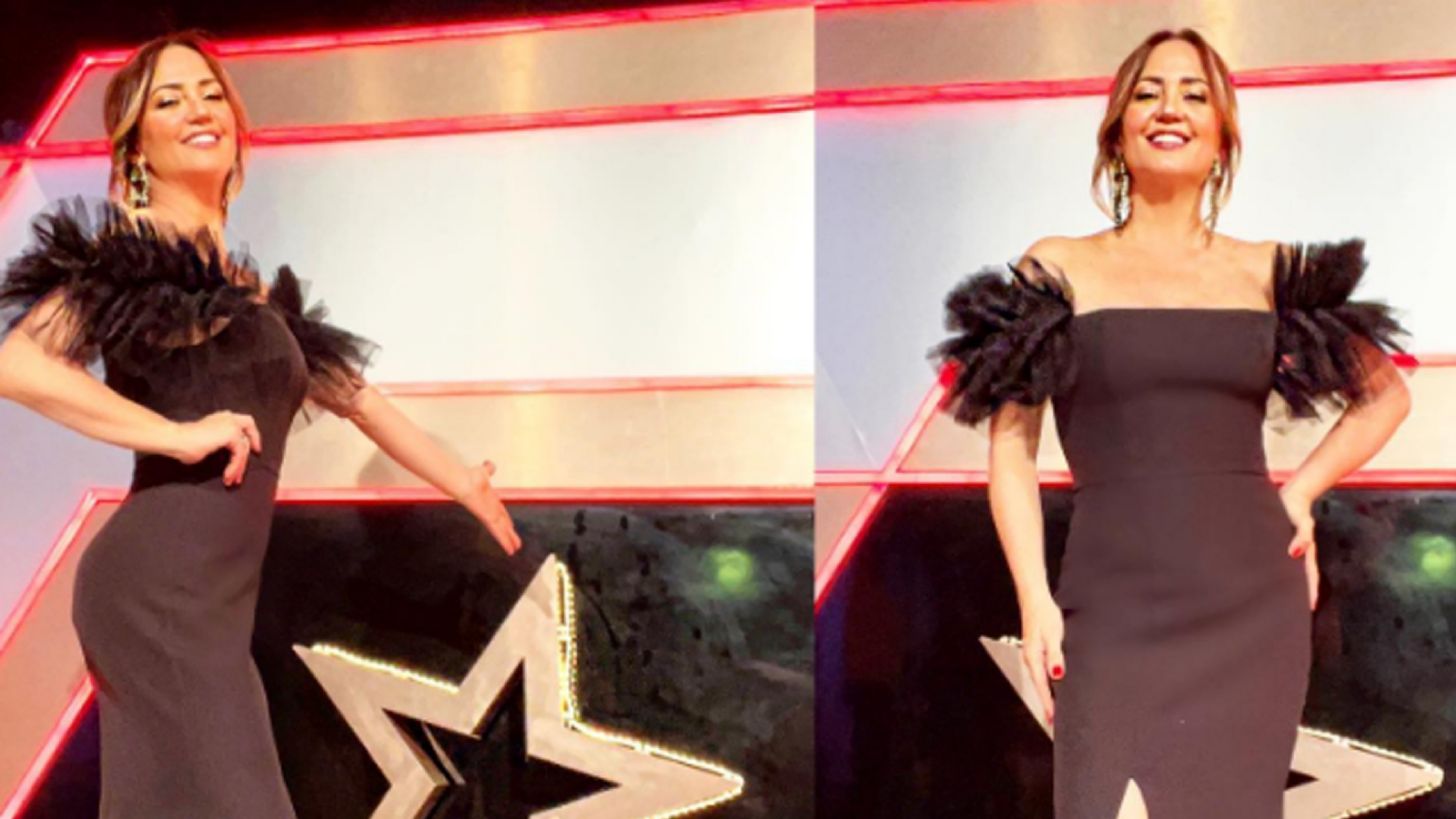 'La Legarreta' en esta ocasión modeló un pequeño vestido de color negro que le quedaba sumamente cortito y con el cual pudo ver sus torneadas piernas, unos tacones negros con brillantes y el cabello peinado con ondas.