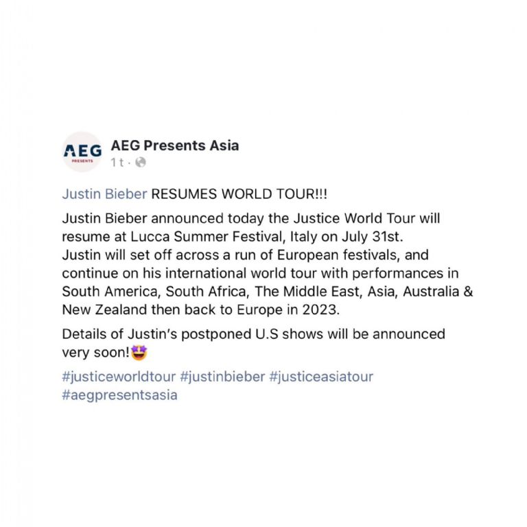 Previo a este anuncio, Bieber estuvo en la Ciudad de México reuniendo a más de 57 mil personas como parte de su tour, interpretando éxitos como 'Somebody to Love', 'Hold On', 'Where Are Ü Now' y 'Yummy', entre muchos más: "Muchas gracias, estoy muy agradecido de estar aquí, este es el mejor lugar en el que podría estar. Tengo que decir te amo, te amo, te amo, con todo mi corazón", expresó Bieber en español, pronunciando las últimas palabras que, de acuerdo con el mismo joven canadiense, acababa de aprender.