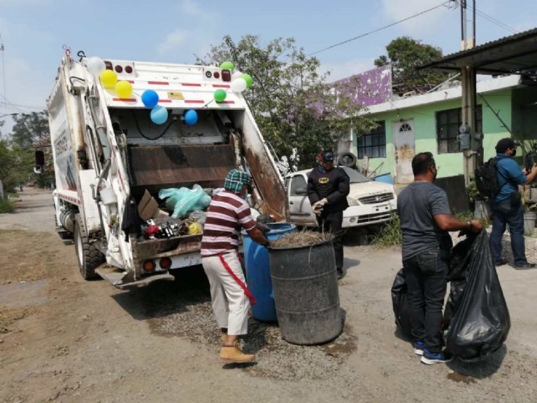Ciudad Madero, Tamaulipas.- En vísperas de la celebración del Día del Niño, empleados del área de servicios públicos de Ciudad Madero, entregaron juguetes a niños y niñas sobre un camión recolector de basura.