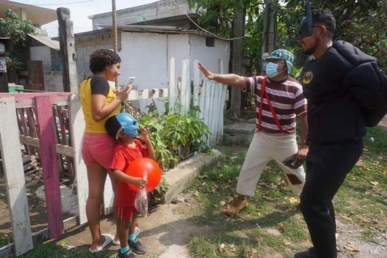 Vestidos de el emblemático personaje mexicano 'El Chavo del 8' y el superhéroe Batman, trabajadores recorrieron las calles con la intención de llevar un detalle a los pequeños en sus hogares, quienes a diario les regalan una sonrisa.