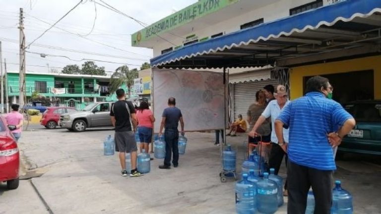 Fue en el fraccionamiento Miramar, en la zona norte de Madero, donde constató que los ciudadanos salían con cubetas, ollas, garrafas y hasta envases de refrescos para poder tener agua en sus hogares ante la carencia del producto en negocios y tiendas.