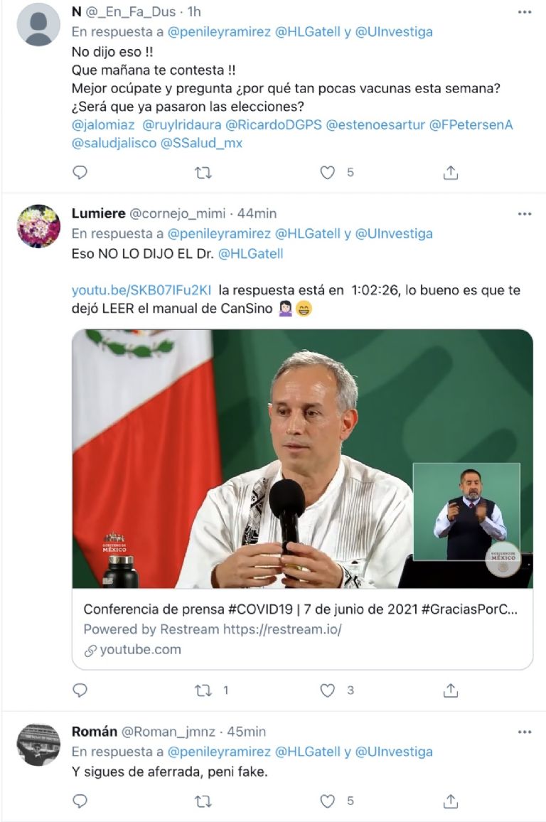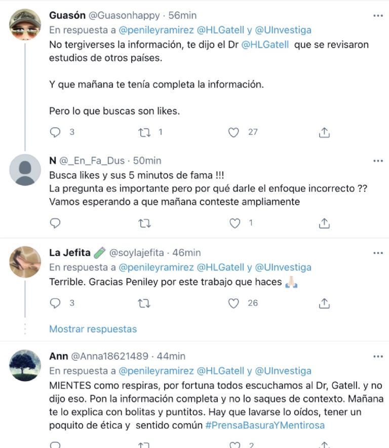 Tras confirmar los hechos en sus redes sociales la periodista Peniley Ramírez fue atacada por varios usuarios que exhibieron que en ningún momento Lopez-Gatell confirmaron su información.