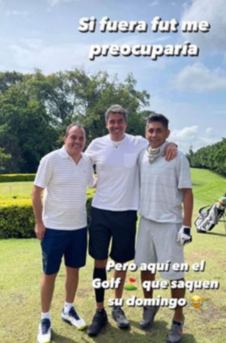 Sin embargo, el gobernador Cuauhtémoc Blanco causó descontento el pasado sábado al compartir en redes sociales una fotografía en la que se muestra jugando golf al lado de celebridades como el exportero Jorge Campos y el empresario Arturo Elías Ayub.