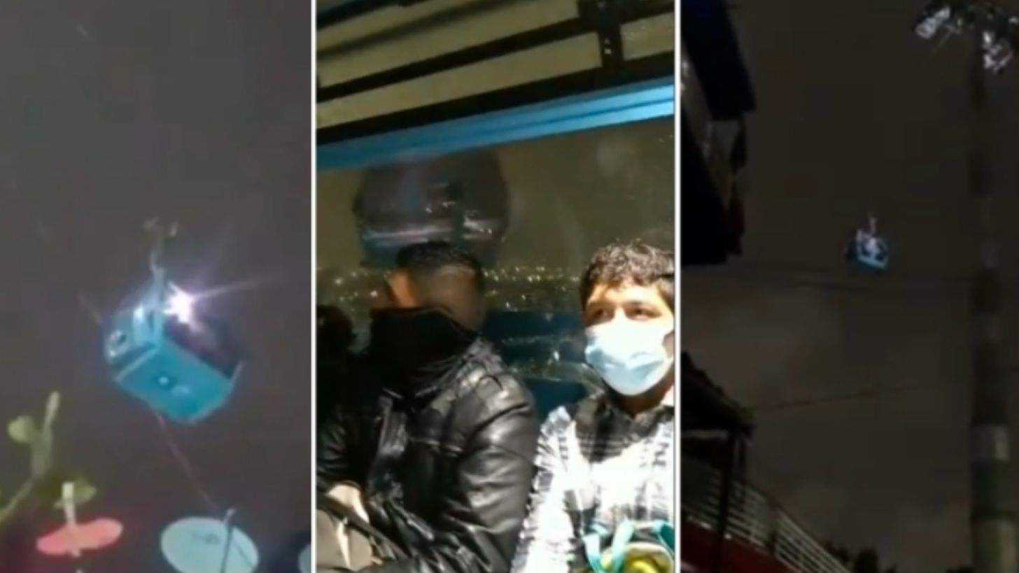 En el material audiovisual, se ve cómo la cabina comienza a tambalearse lentamente, a lo que una voz masculina pide calma a sus acompañantes: