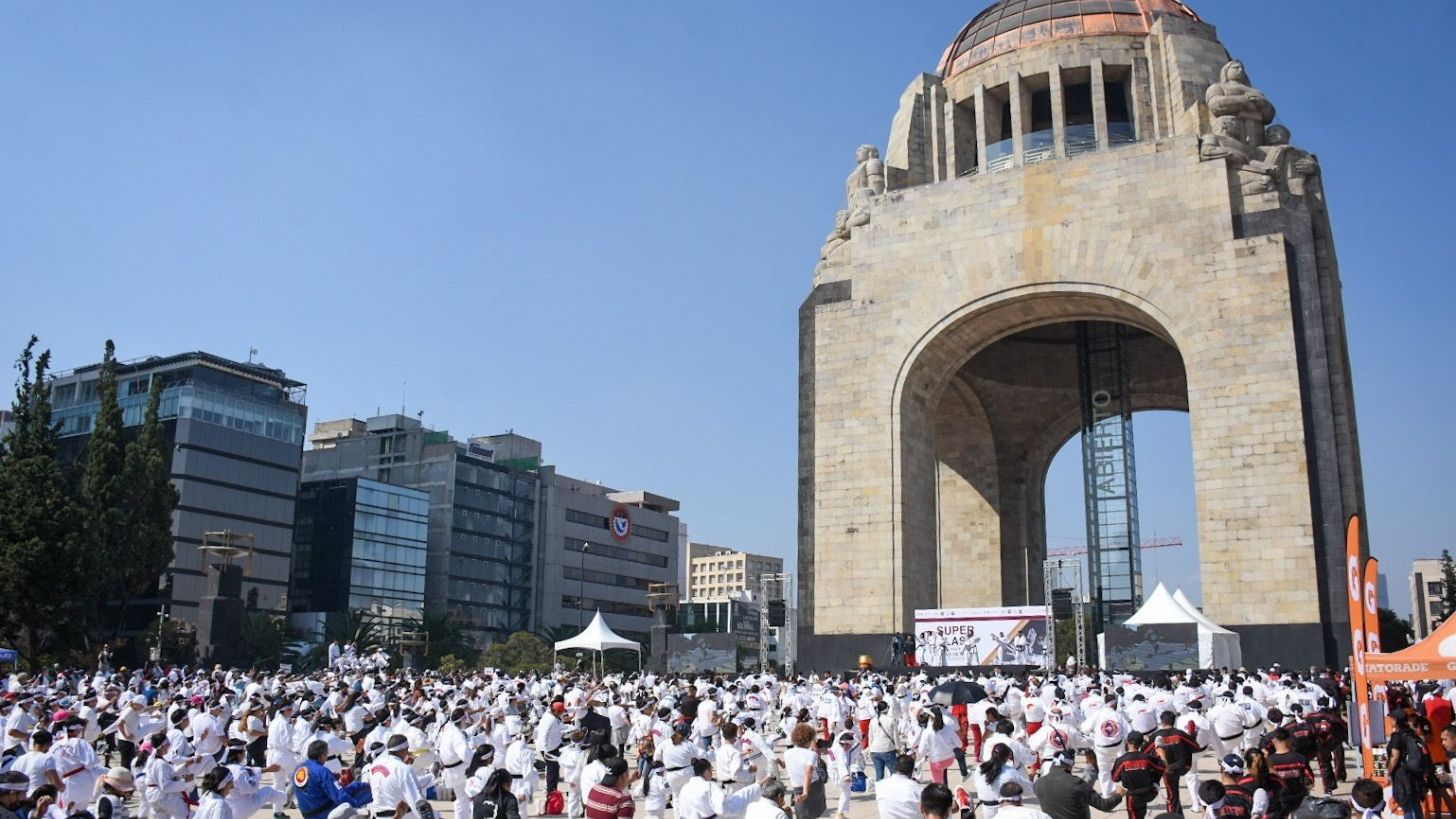 Ciudad de México.- Este domingo se realizó la Súper Clase de Artes Marciales en el Monumento a la Revolución, evento que contó con la participación de 3 mil asistentes entre niñas, niños, jóvenes y adultos quienes entrenaron en conjunto con movimientos básicos de ataque y defensa.