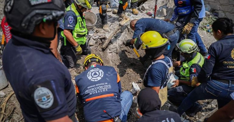 En los trabajos de remoción de escombros, también colaboran elementos de la Secretaría de la Defensa Nacional (Sedena), de la Guardia Nacional (GN), Comisión Estatal de Seguridad Pública (CES), Escuadrón de Rescate y Urgencias Médicas (ERUM), Centro Regulador de Urgencias Médicas (CRUM), Cruz Roja delegación Morelos, grupos voluntarios y autoridades del municipio. Personal del CES informó que continúan las labores de búsqueda con binomios caninos en uno de los domicilios, sin que se haya reportado el descubrimiento de otra víctima.