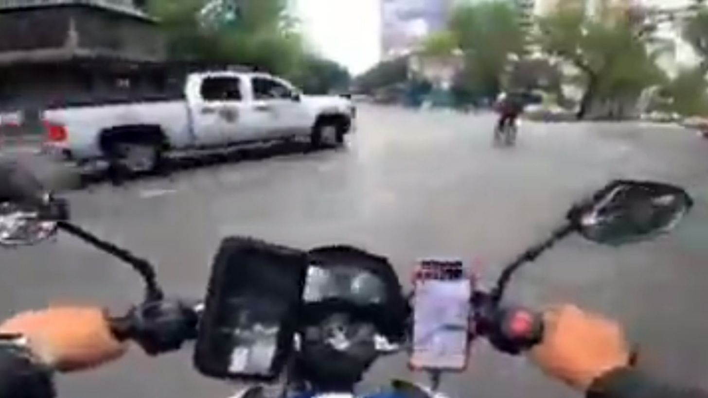 Un motociclista fue quien captó el momento en el que la camioneta se llevó al ciclista y, aunque se detuvo unos momentos, después huyó al observar que el sujeto se encontraba bien. De acuerdo con las imágenes, el conductor del vehículo, que además se pasó el alto, trató de frenar y esquivar al ciclista, sin éxito, sin embargo, sí lo lesionó: "Aquí traigo el video, si lo quieres ver porque ya se fue", le dijo el motociclista.
