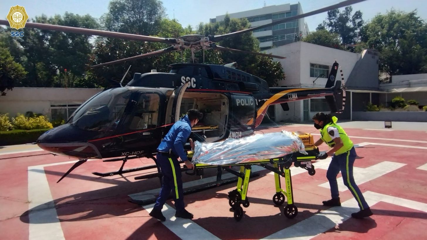 En cuestión de minutos, personal de la SSC la trasladó vía aérea al Hospital de Especialidades Doctor Belisario Domínguez, que se ubica en la alcaldía Tláhuac y, durante el vuelo, los paramédicos le brindaron la atención prehospitalaria necesaria con el fin de mantenerlo estabilizado, en tanto arribaban al nosocomio de destino, donde recibirá la atención médica especializada definitiva. Los Cóndores de la SSC son los encargados de prestar apoyo aéreo a la población de la Ciudad de México en emergencias médicas, tareas de vigilancia, seguridad disuasiva, entre otros servicios que requieren su participación.