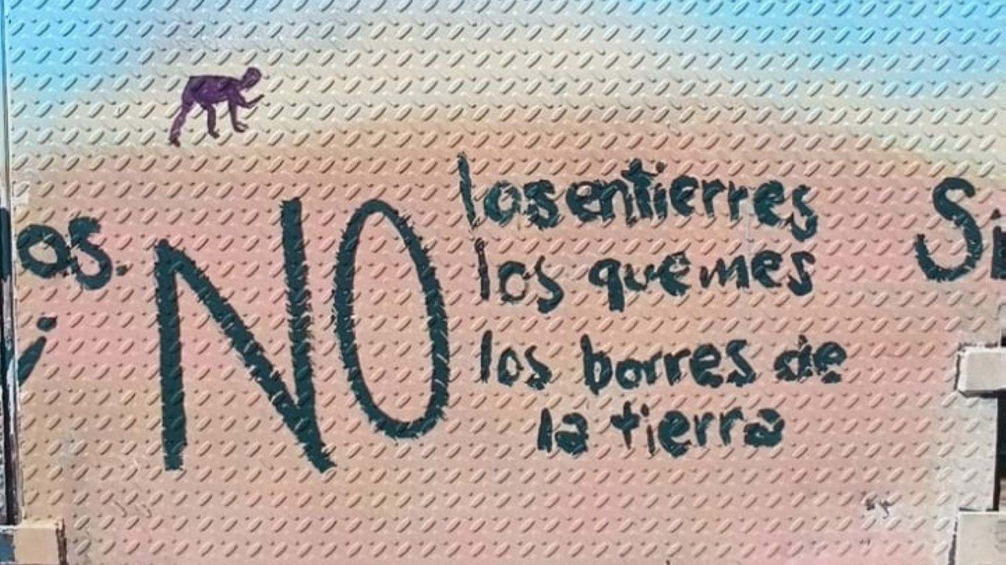 “Camino día tras día sobre muertos con la esperanza de que alguno seas tú”, se puede leer en el mural.