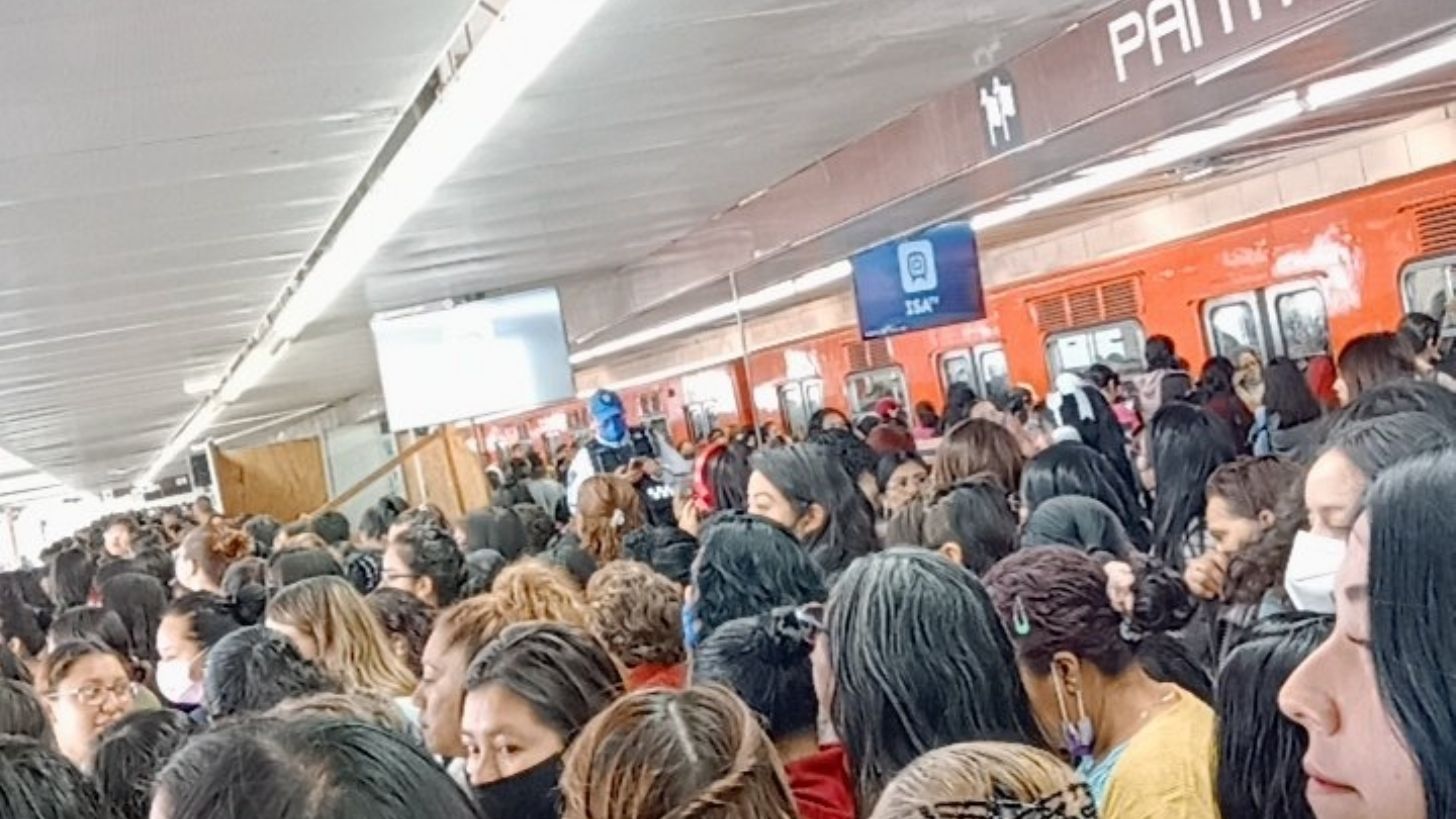 "Se presenta alta demanda en La Línea 9, sin embargo el avance de los trenes es continuo. Permite el libre cierre de puertas y antes de entrar permite salir, para agilizar el abordaje", escribió en redes sociales la cuenta oficial del Metro.