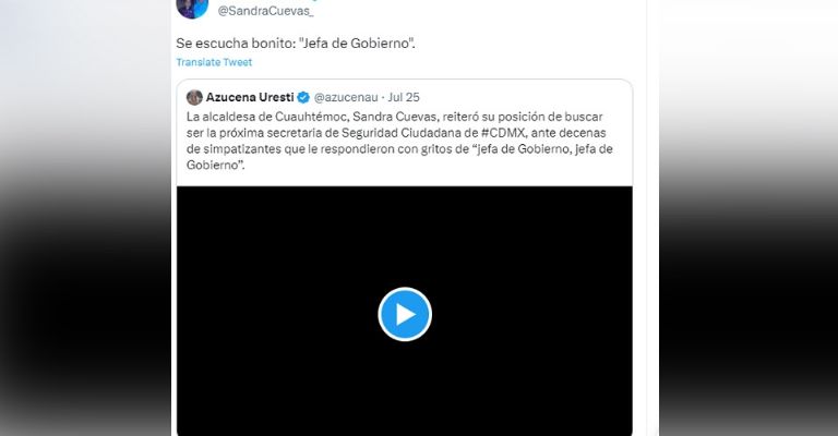 Cabe recordar que el pasado mes junio, Cuevas expresó que más que ser la próxima jefa de Gobierno, en sustitución de Claudia Sheinbaum, quien fungía en dicho cargo, le gustaría ser la próxima secretaria de Seguridad Ciudadana y ocupar el cargo que actualmente tiene Omar García Harfuch, al mencionar que ella buscaría formar parte de las administraciones de Santiago Taboada o Rubalcava, quien fuera el seleccionado.