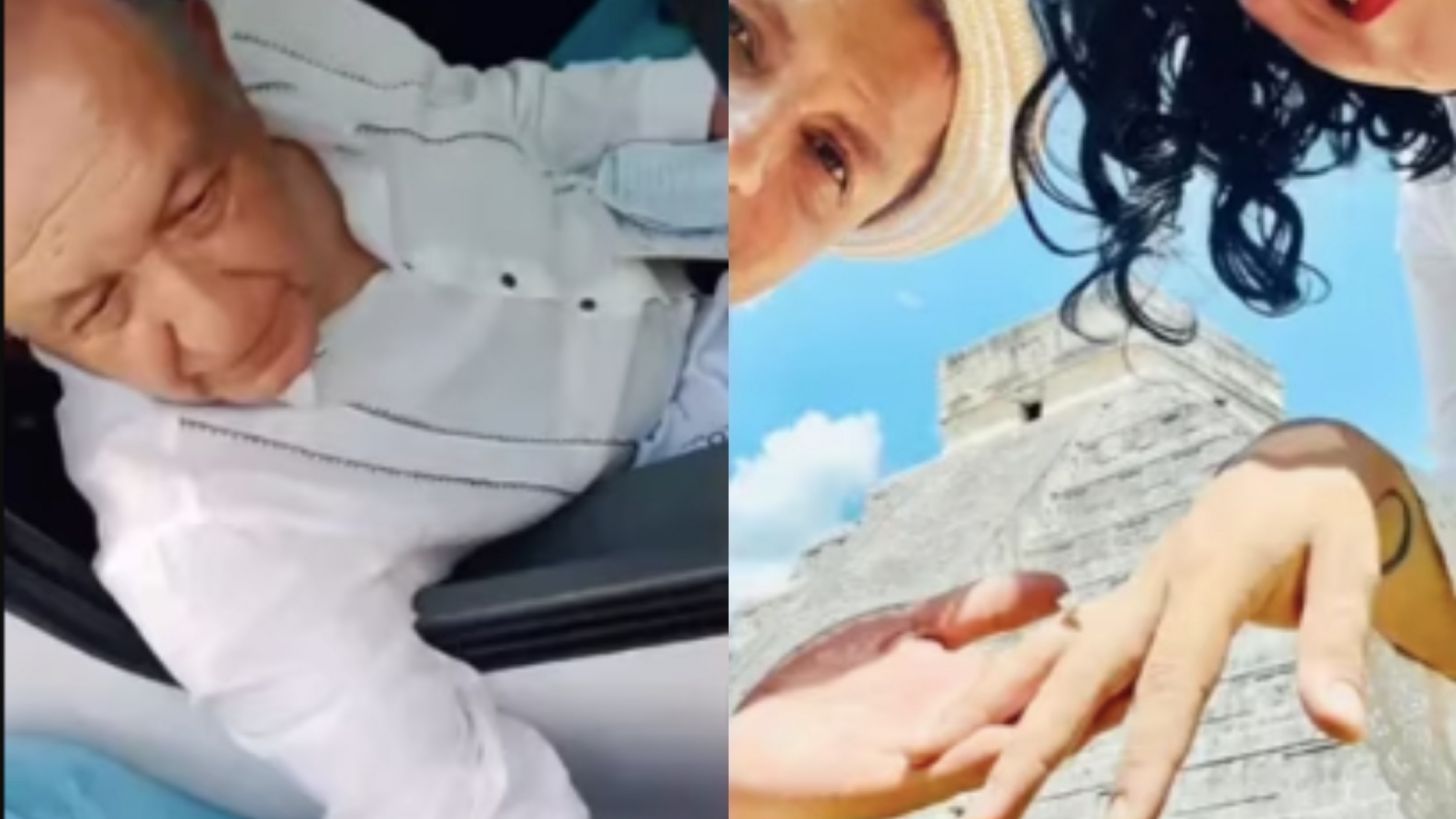 El presidente que tuvo que seguir con su agenda de actividades, solo los felicita y agradece que lo hayan considerado para la boda, para después seguir con su camino. En ningún momento se baja del vehículo pero eso no impidió que también los presentes celebraran el compromiso que acaba a de suceder. Momentos más tarde, la pareja compartió una serie de fotografías que fueron tomadas en zonas arqueológicas con el objetivo de presumir la joya y claro, manifestar al mundo que pronto habrá boda.