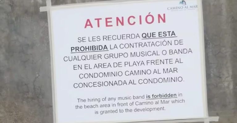 El aviso colocado en el condominio deja claro que está terminantemente prohibido realizar actividades musicales en la playa concesionada, lo que ha causado preocupación entre los amantes de la música de banda y quienes consideran que estas presentaciones forman parte integral de la identidad de Mazatlán.