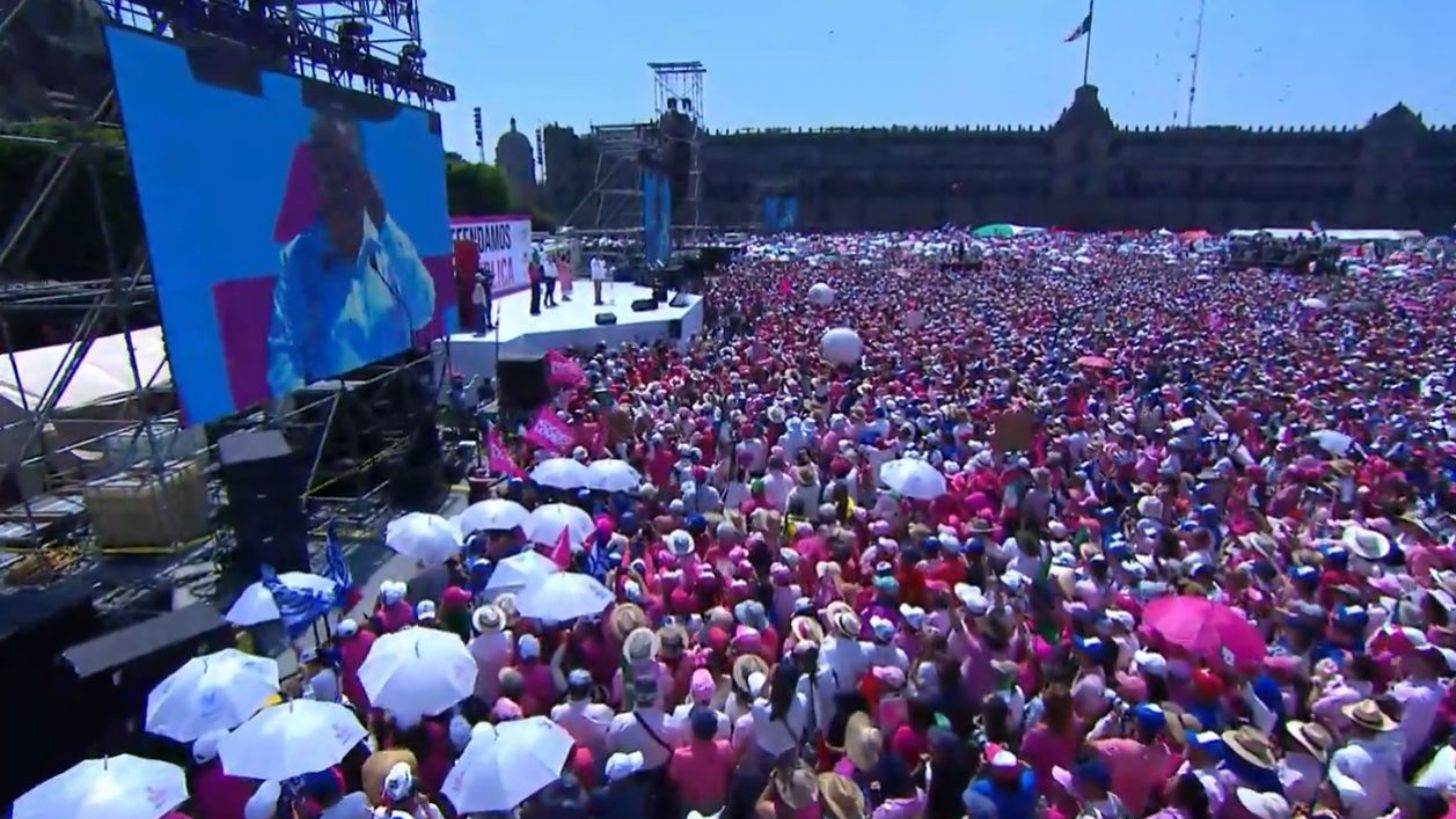 Ciudad de México.- El Zócalo de la Ciudad de México luce abarrotado por los miles de ciudadanos que integran la ‘Marea Rosa’ y que salieron a defender la democracia, justicia y libertad. Esto pese a que los manifestantes de la Coordinadora Nacional de Trabajadores de la Educación (CNTE) mantenían tomada media plancha de la explanada.