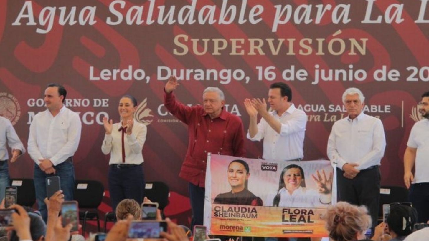El encuentro de Sheinbaum Pardo y López Obrador ocurrió la mañana de este domingo 16 de junio en la Unidad Deportiva Ciudad Lerdo, la cual se ubica en el bulevar Miguel Alemán, de la colonia Magisterial, en la región de la Laguna. Además de los morenistas, también estuvieron presentes los gobernadores de Durango y Coahuila, Esteban Villegas y Manolo Jiménez.