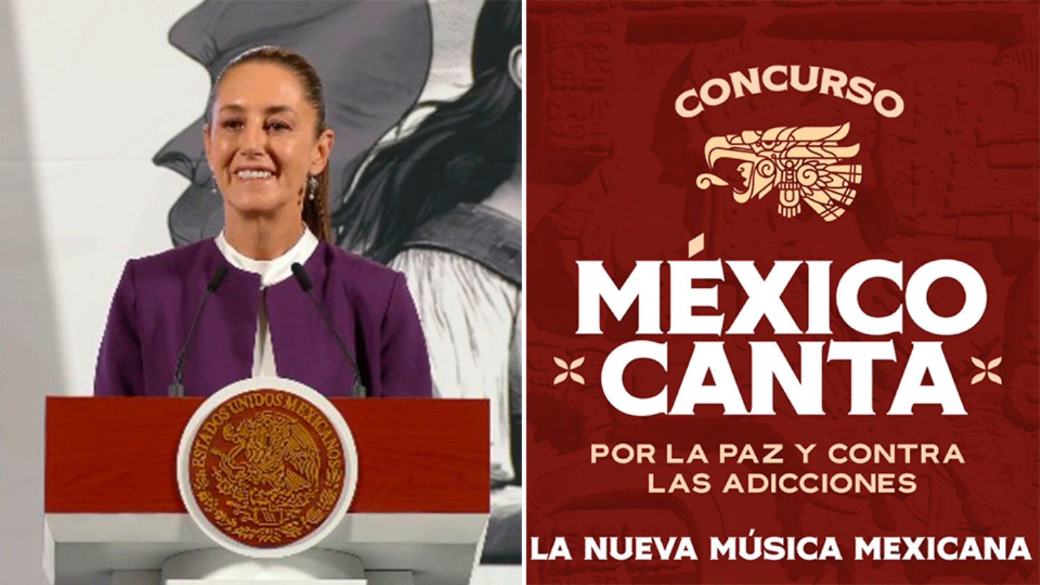 Ciudad de México.- Durante la tradicional conferencia 'Mañanera del Pueblo' desde el Salón de la Tesorería del Palacio Nacional de este lunes 7 de abril, la presidenta de México, la doctora Claudia Sheinbaum Pardo, presentó con el respaldo de la Secretaría de Cultura y del Consejo Mexicano de la Música un nuevo proyecto denominado México canta. la cual es una iniciativa que además de tener el propósito de promover la música del país, busca evitar en palabras de la mandataria la "apología el crimen o las drogas".