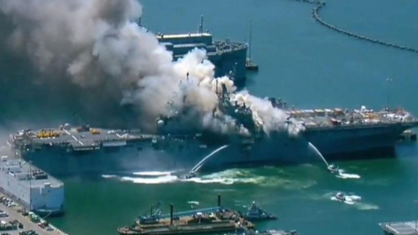 El incendio fue reportado el lunes cuando estalló en la bodega de carga inferior del barco, el cual estaba atracado para mantenimiento de rutina en su puerto de origen en la Base Naval en San Diego, California. Hay al menos 59 heridos.