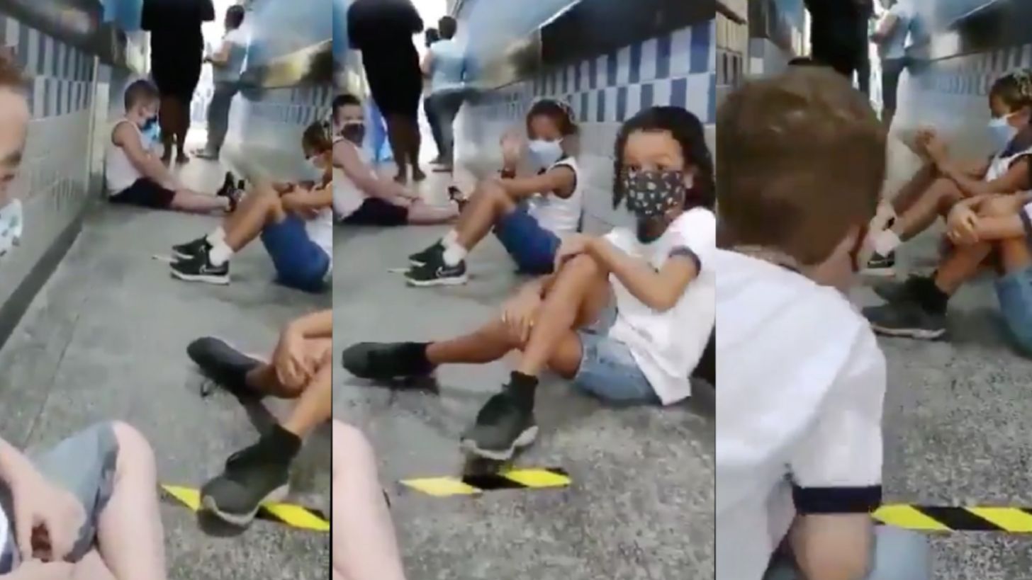 Sao Paulo, Brasil.- En redes sociales circula un video donde se ve cómo un grupo de niños se mantiene sentado en el suelo mientras de fondo se escuchan detonaciones de arma de fuego. Los menores de edad, a pesar de las circunstancias, obedecen las indicaciones de la maestra quien les pide mantener distancia para evitar contagios por coronavirus.