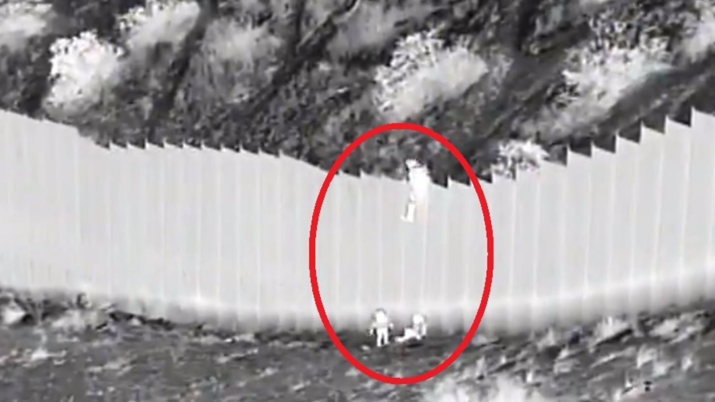 Autoridades fronterizas compartieron el crudo video en el que un hombre tira a dos niñas al desierto a su suerte desde una altura aproximada de 4 metros.