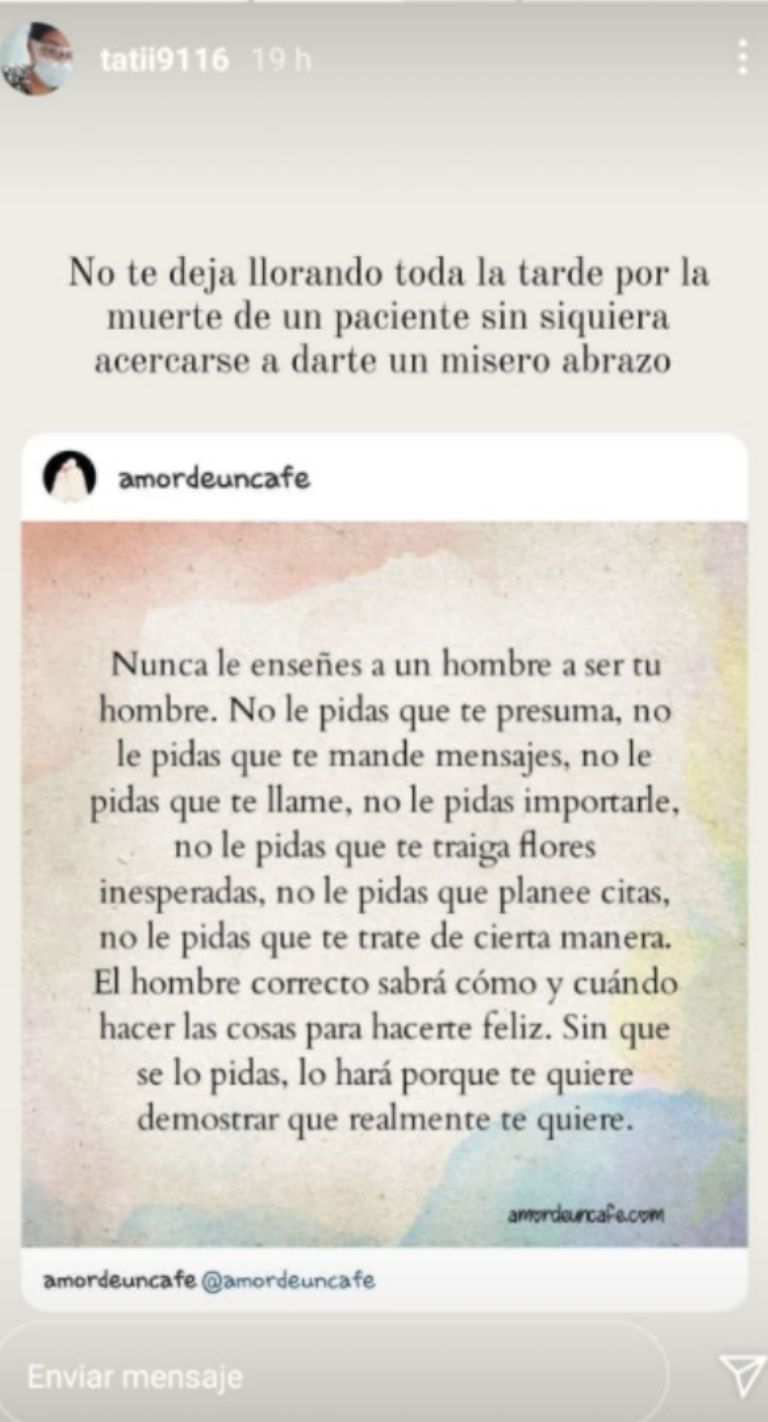 Que deprimente es ser médico y tener que dar malas noticias", escribió en una publicación en su cuenta de Instagram.