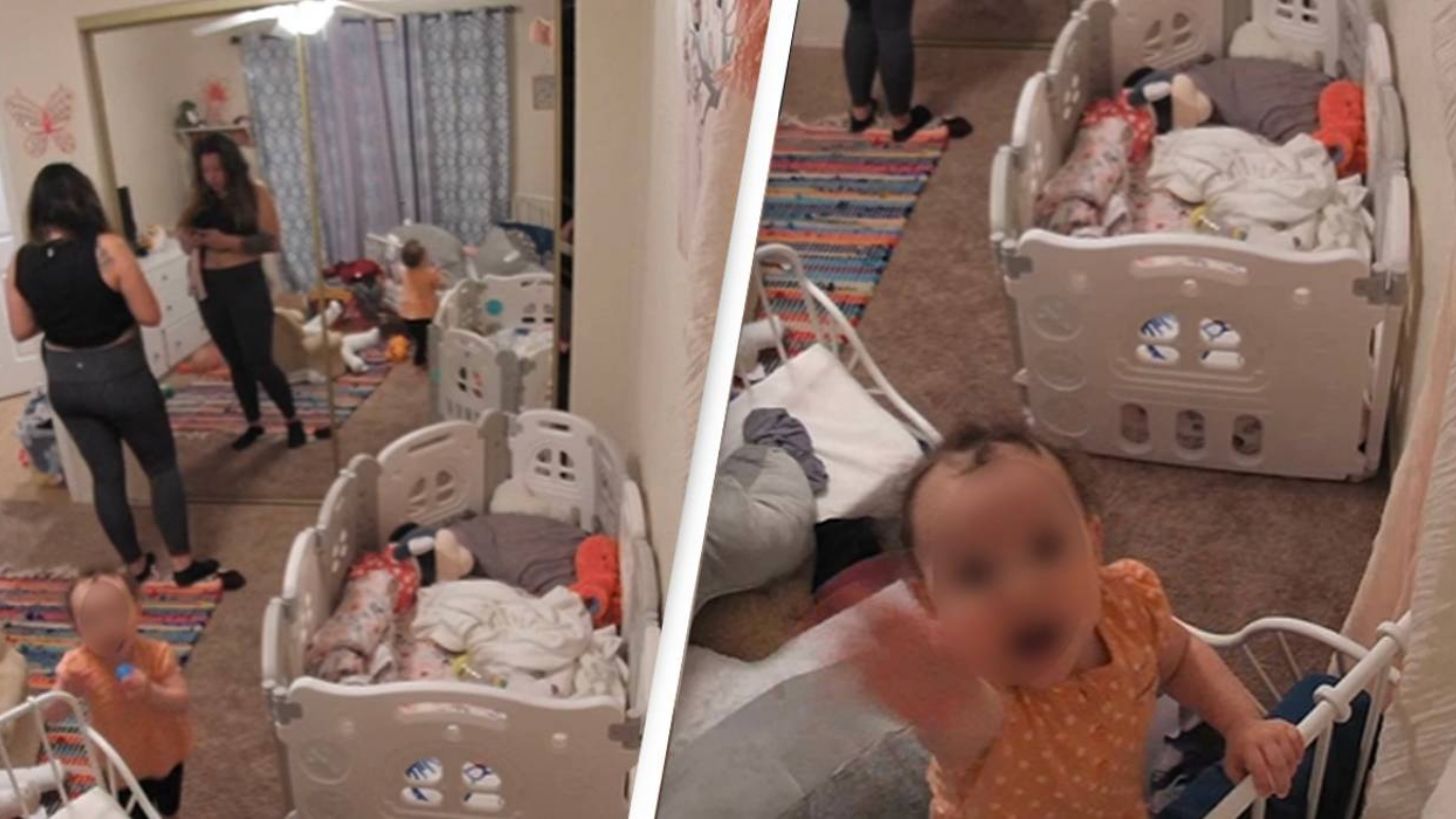El video muestra como su niña escala por la cama hasta acercarse a la cámara mientras ella la vigila con el reflejo de un espejo gigante y envía mensajes desde su teléfono celular.