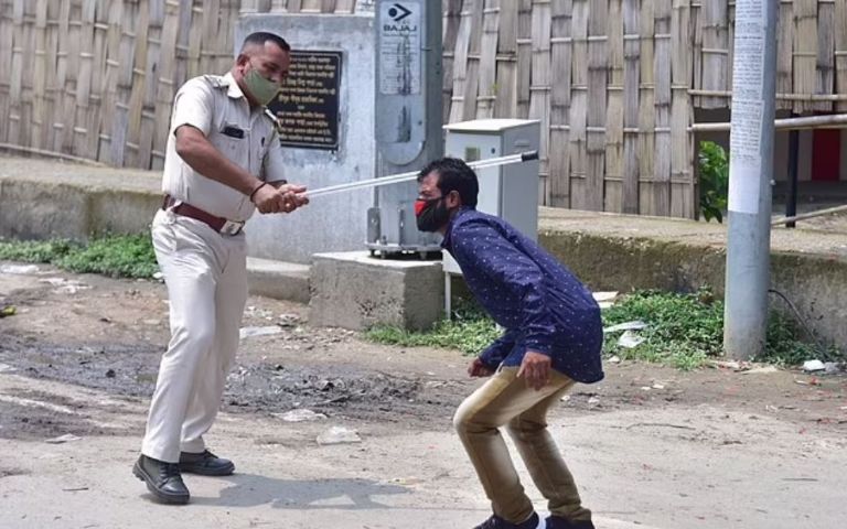 Assam, India.- El Covid-19 ha mostrado su peor lado en India, país en el que la segunda ola ha sido mortal para miles de personas, razón que llevó al Gobierno de Assam a imponer reglas sumamente estrictas, con castigos físicos a quienes rompan el toque de queda, esto con la finalidad de disminuir los casos del virus.