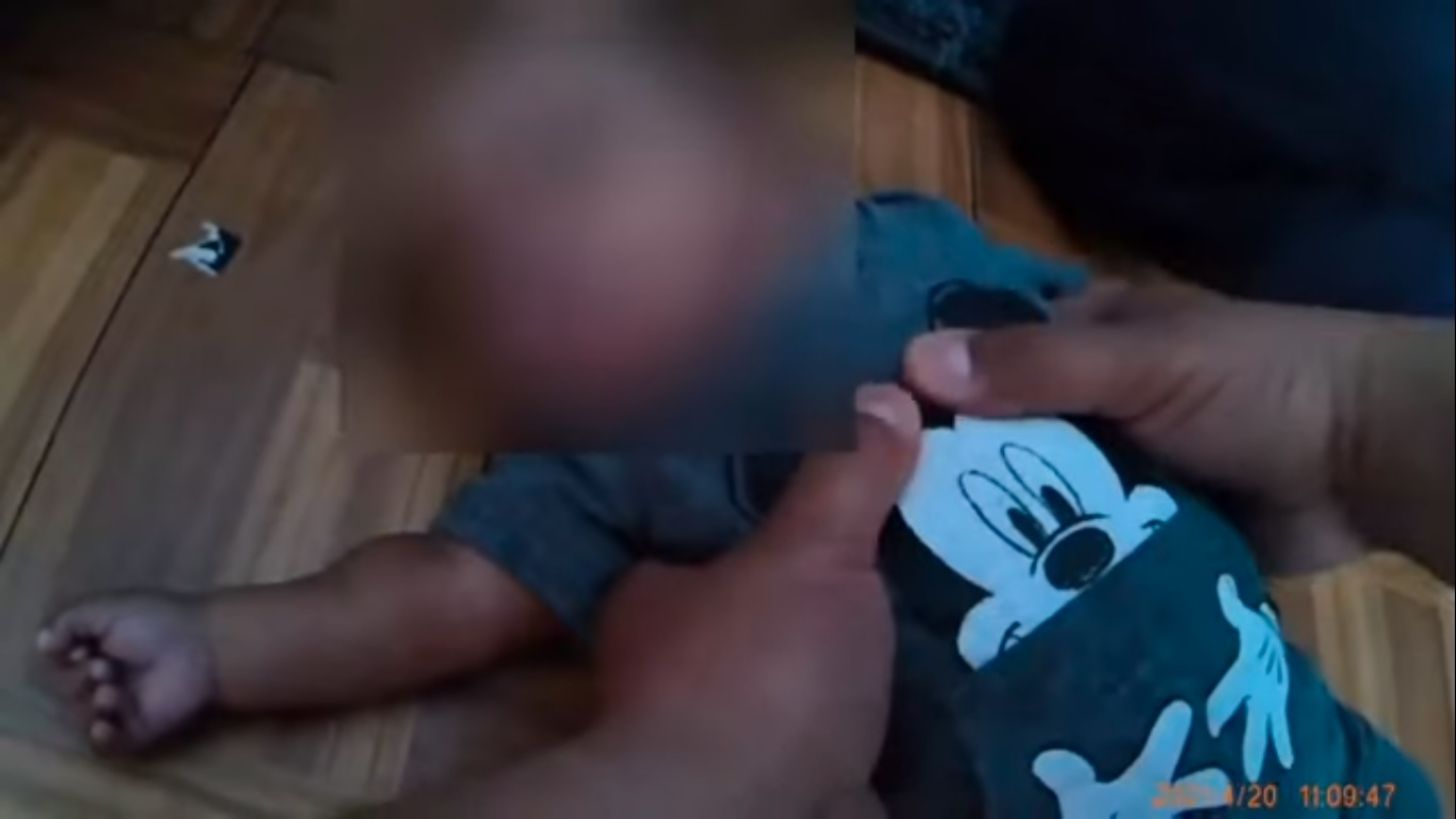 Uno de los agentes le da palmadas en la espalda para que escupiera lo que se le atoró en la garganta. Sobre el minuto 3:30 del video, el bebé comienza a llorar.