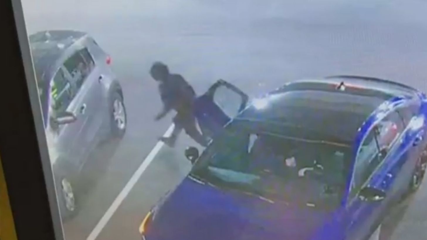 Mientras estaba fuera de su camioneta SUV, dos sujetos en un Kia azul se emparejaron a su unidad, donde iban su hijo de 11 años y su hija de 5 años. Un video de vigilancia muestra como uno de los sospechosos sube a su vehículo.