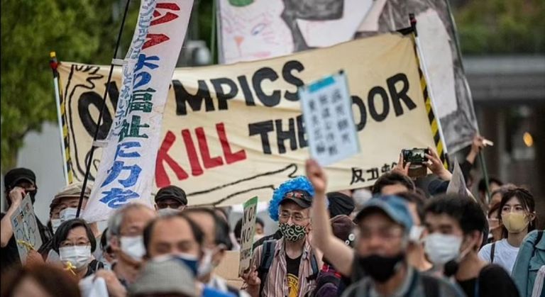 Los japoneses temen que el caos, que ya de por sí viven a causa del virus, se salga de control una vez comiencen los Juegos Olímpicos y Paralímpicos, mismos que traerán cerca de 15 mil personas, entre los que se encuentran atletas, jueces, medios de comunicación y funcionarios. La manifestación se formó con filas enormes entorno al estadio hasta la noche del 9 de mayo.