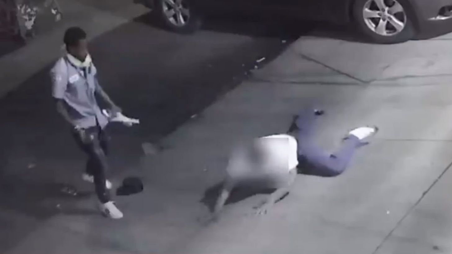 Una segunda cámara capta el momento en el que el agresor lanza un par de ataques a su víctima y lo derriba. Una vez en el suelo, lo remata con una patada en la cara.