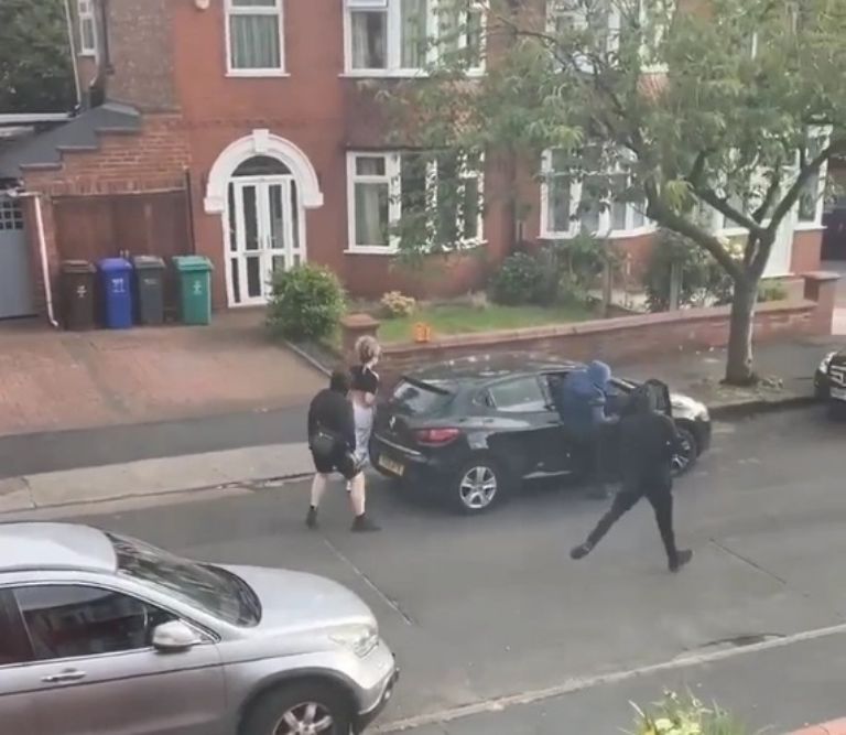 Manchester, Inglaterra.- Este es el terrible momento en el que una madre fue sacada de su auto por unos hombres con cuchillos mientras rogaba desesperadamente que sacaran a su bebé por la parte de atrás.