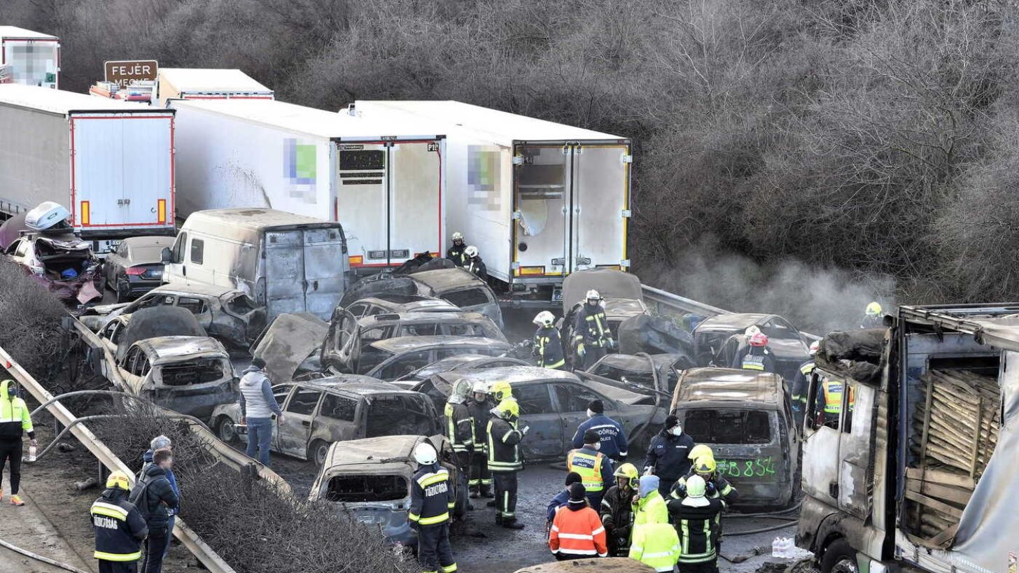 De acuerdo con algunos informes, los hechos ocurrieron alrededor de las 14:00 horas en la autopista M1, en las cercanías del pueblo de Herceghalom. Según las imágenes captadas por las cámaras de seguridad de los vehículos, el choque habría sido causado por una tormenta de polvo que azotó al kilómetro 26 de la mencionada carretera. En un clip se puede apreciar como un vehículo acelera de manera descontrolada hasta estamparse con un carro más adelante.