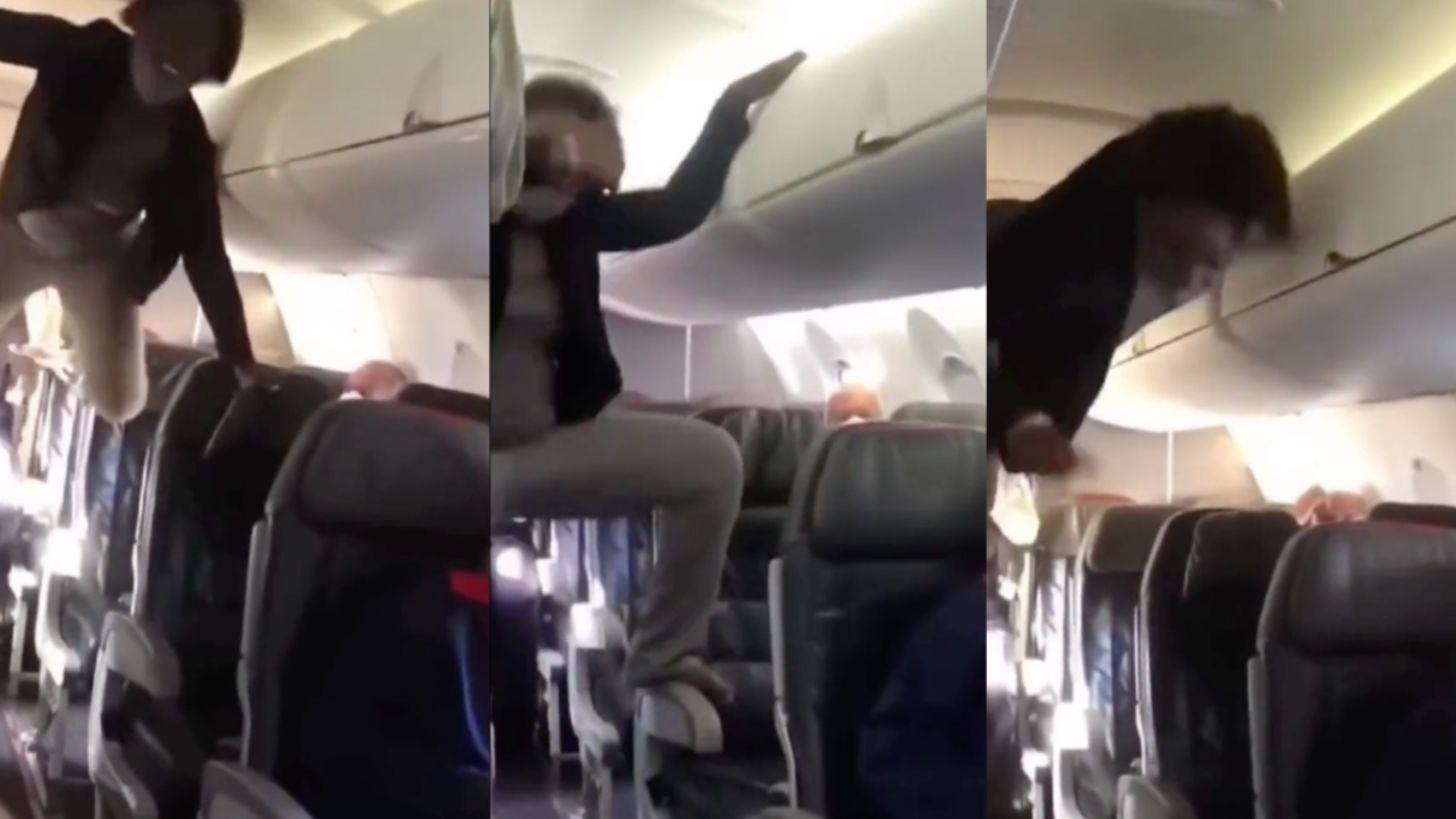 En las imágenes se muestra cómo una mujer de descendencia afroamericana comienza a caminar y en el pasillo del avión diciendo cosas con un tono bastante demoníaco. La mujer hace caso omiso de las indicaciones del personal de vuelo y poco a poco comienza a mostrarse más agresiva, tanto que incluso se sostiene del área donde se coloca el equipaje de mano y comienza a brincar entre los asientos, causando intriga entre el resto de pasajeros, misma que después se torna en miedo.