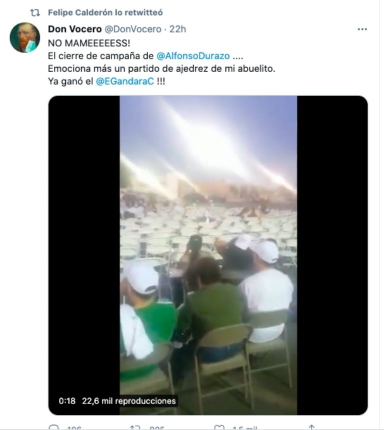 El clip de casi medio minuto de duración de inmediato fue compartido en la cuenta de Twitter del expresidente de México, Felipe Calderon Hinojosa, acción que parece haber 'celebrado', pues Durazo forma parte de los partidos de oposición.