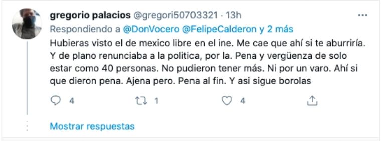Por su parte, Felipe Calderón no puso comentario alguno a las críticas que recibió solo por haber retuiteado el video, hecho que quizá no ocurra, ya que el exmandatario no suele responder a los comentarios que le hacen los internautas.