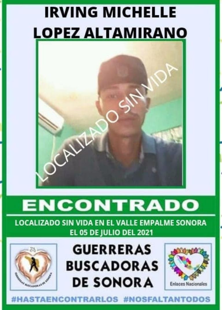 Empalme, Sonora.- Luego de 8 meses en los que la familia de Irving Michell López Altamirano no supo nada sobre su paradero, esta semana se informó que su cuerpo fue localizado en el municipio de Empalme, Sonora.