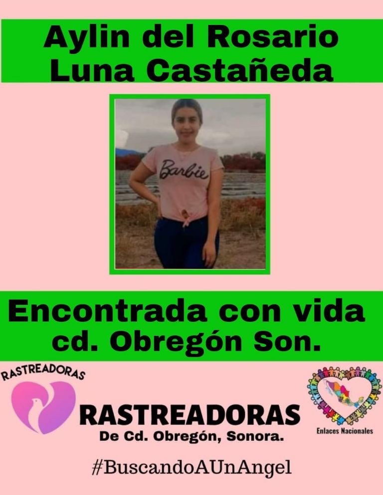 Ciudad Obregón, Sonora.- La mañana de este sábado 2 de octubre se confirmó que la joven Aylin del Rosario Luna Castañeda fue localizada con vida luego de haber sido reportada como desaparecida por su familia en Ciudad Obregón, Sonora.