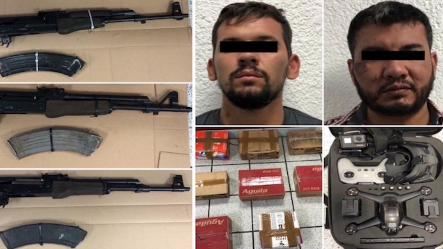 Al momento de llegar al citado negocio, los elementos policiacos realizaron una inspección, en la que aseguraron tres armas de fuego calibre 7.62x39 milímetros, 8 mil cartuchos útiles, 100 gramos de metanfetamina, un dron, una cámara GoPro y dos vehículos.