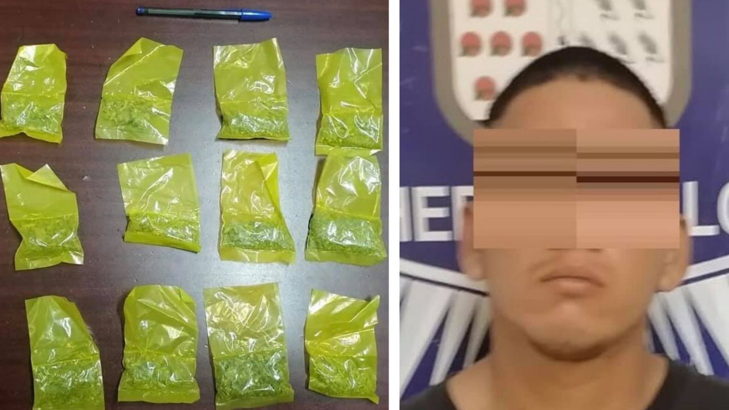 El sujeto fue identificado como Eduardo Ramiro, de 27 años de edad, y su arresto ocurrió sobre las calles Santa Rosalía y Leandro P. Gaxiola. después de que fuera descubierto portando de 12 envoltorios de plástico en cuyo interior había una hierba verde y seca, características propias de la marihuana.