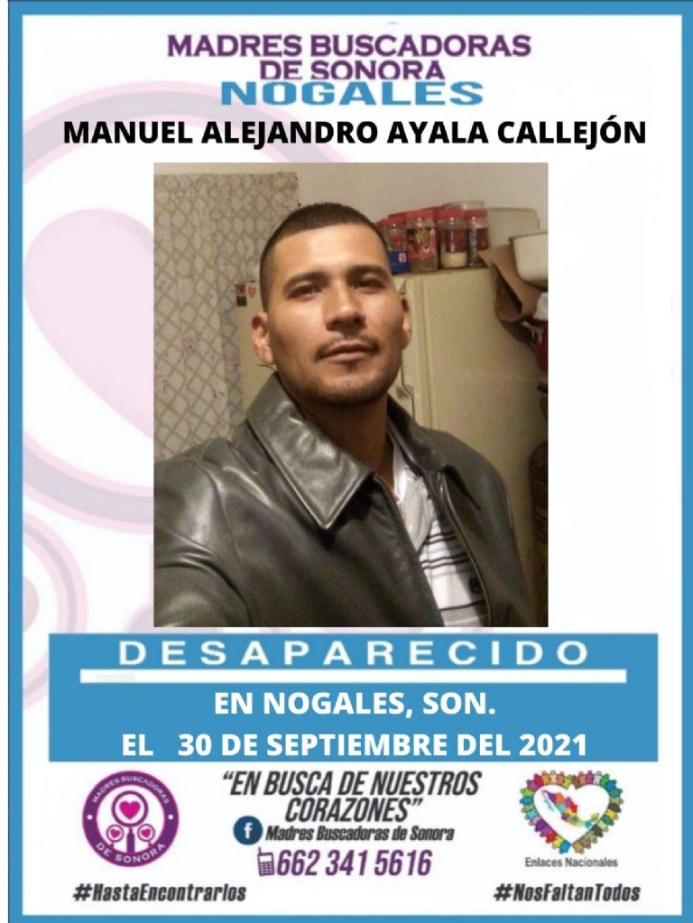 Ciudad Obregón, Sonora.- Este fin de semana, el colectivo Buscadoras de la Frontera Nogales reportó la lamentable desaparición de Manuel Alejandro Ayala Callejón en Nogales, Sonora, quien es buscado sin descanso por sus familiares.