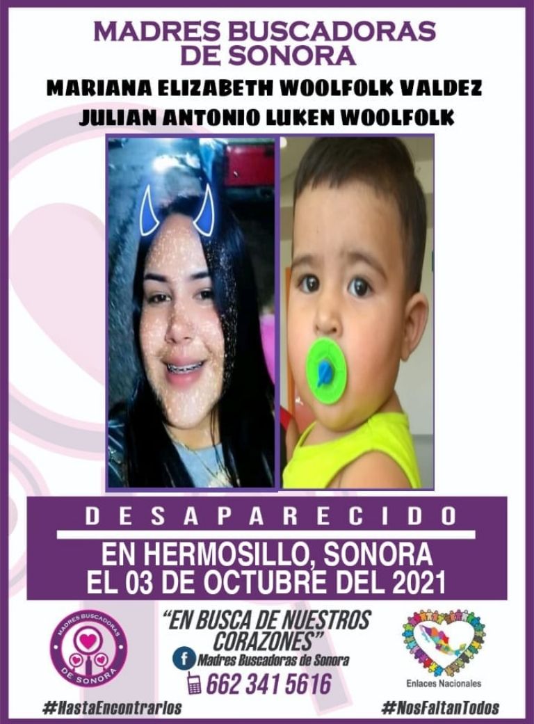 Por su parte, el colectivo Madres Buscadoras de Sonora publicó la ficha de búsqueda de los extraviados y pidió a la gente comunicarse a sus números o directamente con las autoridades mediante la línea de emergencias 911 en caso de contar con información que ayude a dar con el paradero de madre e hijo.