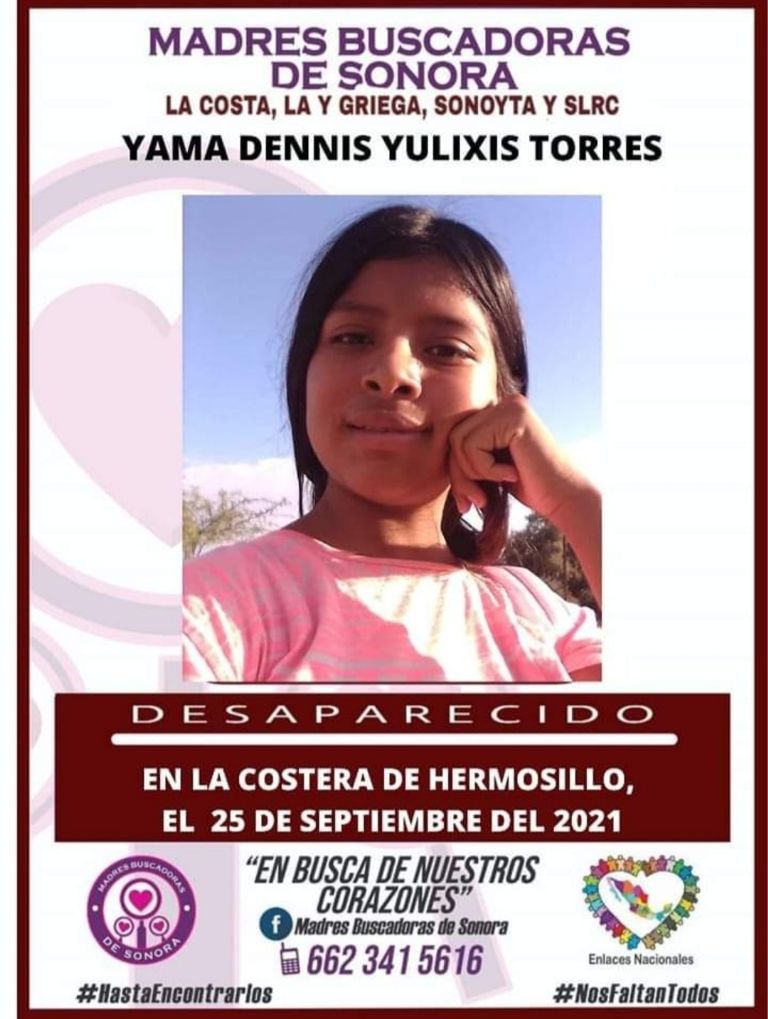 Yama Dennis desapareció el pasado sábado 25 de septiembre en la costa de Hermosillo, luego de que salió de su domicilio y ya no regresó. Su hallazgo tuvo lugar el miércoles 29 de septiembre.