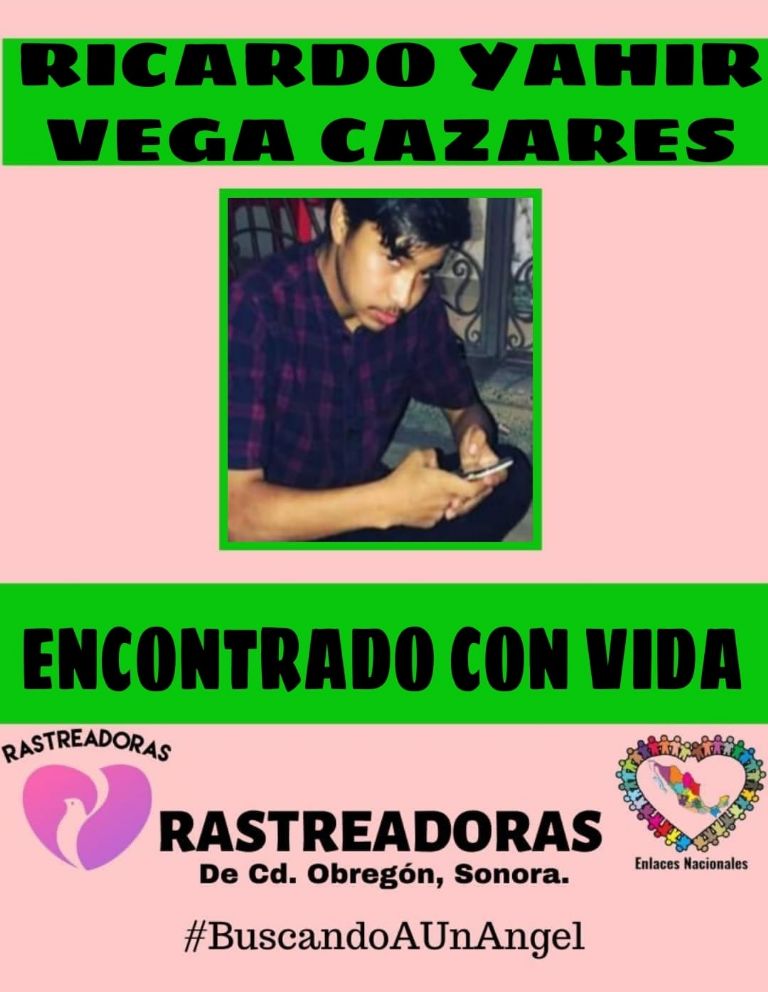 Se trata de Ricardo Yahir Vega Cazares, quien se encuentra sano y salvo y ya está de regreso en casa junto a sus seres queridos. Este había sido reportado como extraviado por su familia desde el lunes 25 de octubre del año en curso.