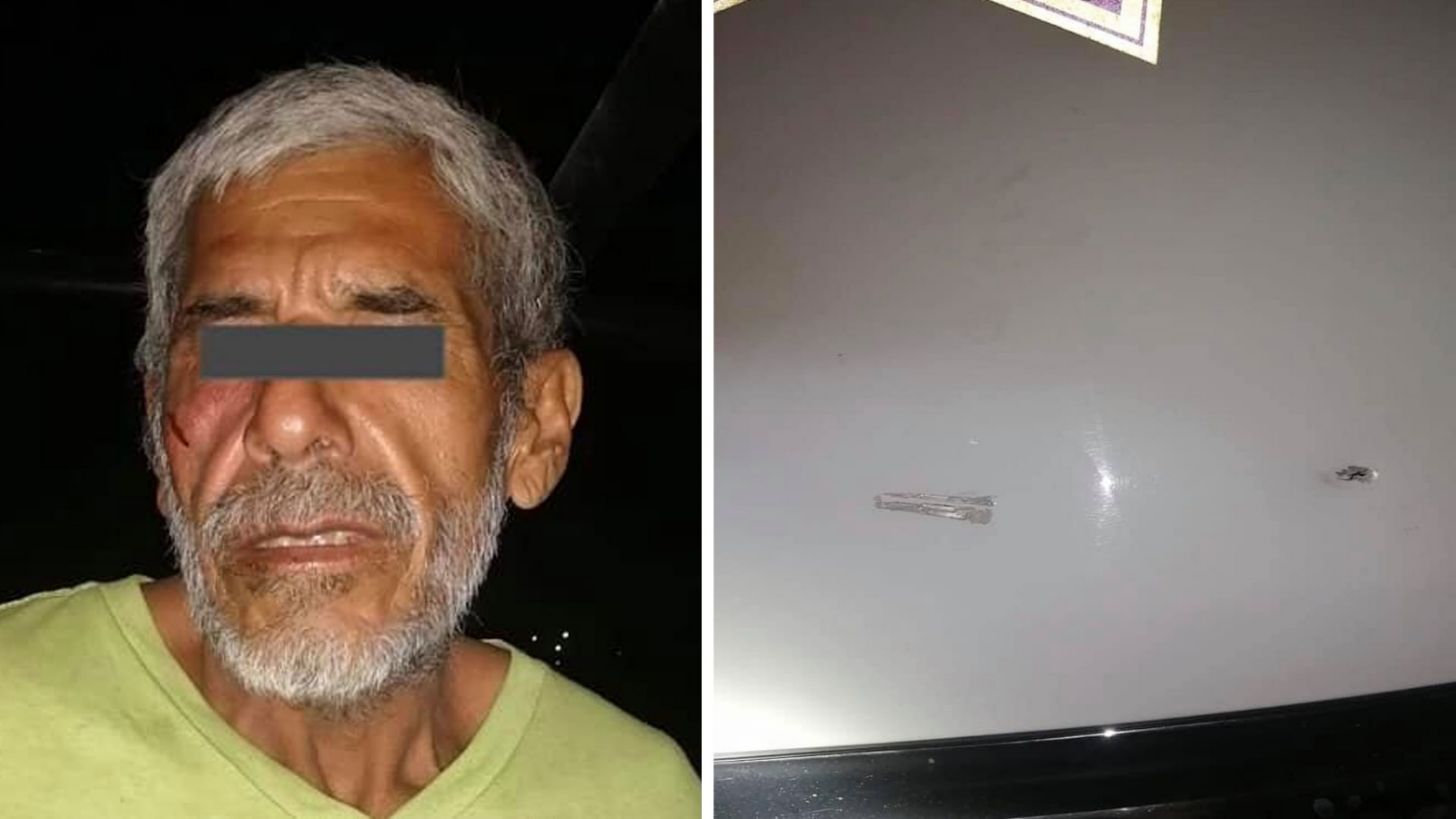 Al llegar los agentes a las calles Sierra del Campanero y Lázaro Mercado, vieron que el sujeto traía entre sus manos piedras con las que le provocó daños a la unidad.