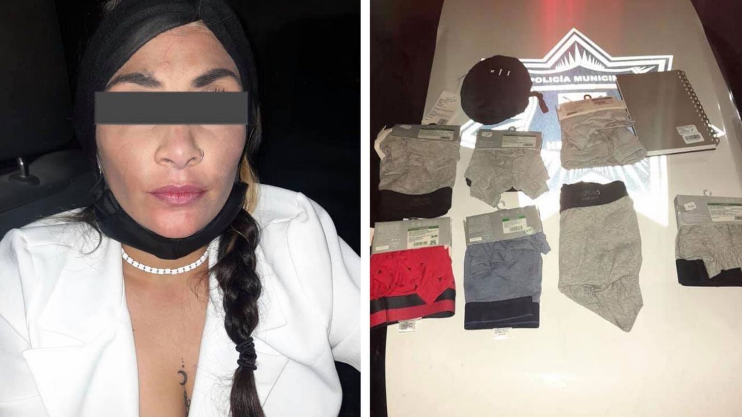 Al ser detenida por los oficiales de la Policía Municipal, se le aseguraron a la mujer siete bóxer para caballero, una libreta y una maleta negra, con valor aproximado a mil 341 pesos.