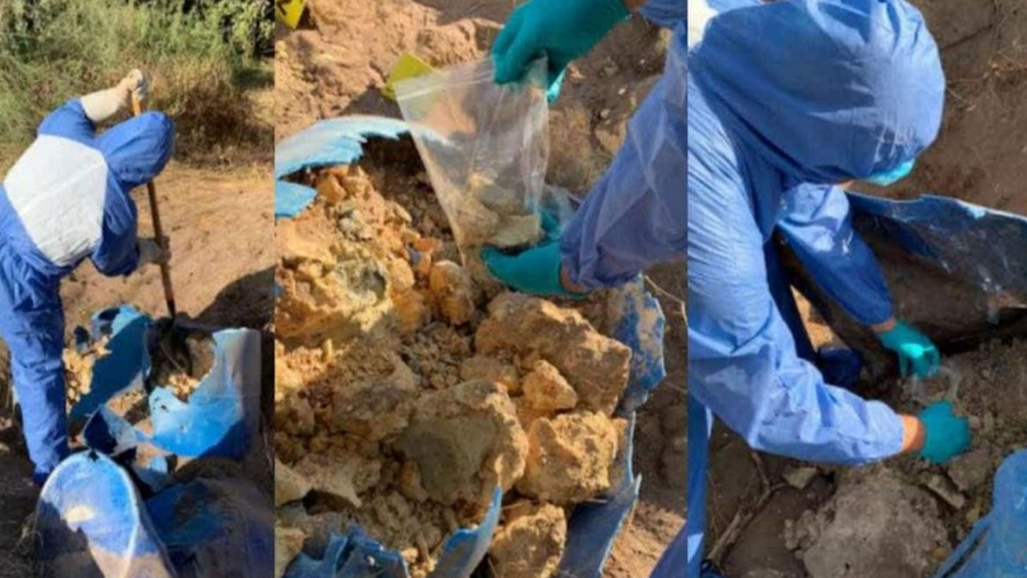 Hermosillo, Sonora.- Estudios hechos en el Laboratorio de Inteligencia Científica Forense (CIF) de la Fiscalía General de Justicia de Sonora (FGJE) determinaron que lo encontrado al interior de cuatro tambos localizados en la comunidad del Huichaca en Etchojoa son compuestos químicos y no restos humanos.