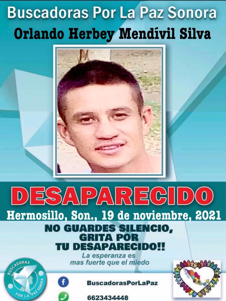 Por su parte, el colectivo Buscadoras por la Paz publicó la ficha de búsqueda de Mendívil Silva y puso disposición su número telefónico para que la gente se comunique y aporte cualquier información que ayude a dar con su paradero.