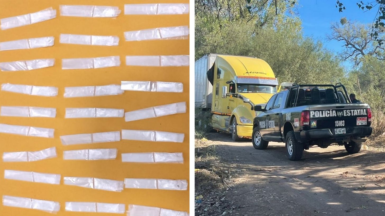 Huatabampo, Sonora.- La Policía Estatal de Seguridad Pública (PESP) logró ubicar un tráiler que minutos antes se había reportado como robado en Huatabampo, además en Álamos, en coordinación con la Secretaría de la Defensa Nacional (Sedena), decomisó varios paquetes de sustancias prohibidas.